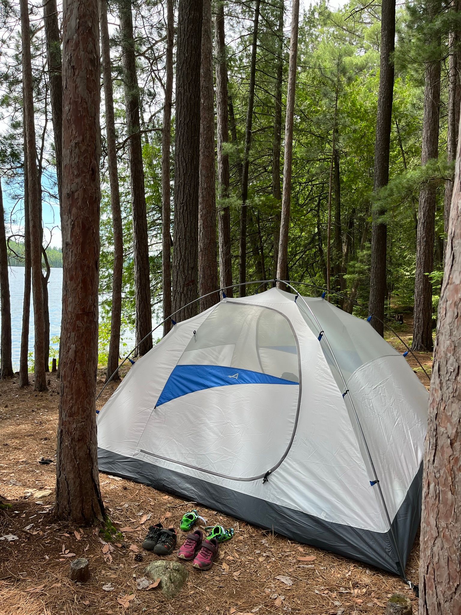 - Swapping our usual 6-person or 8-person tent for a lightweight 4-person tent (purchased on clearance from SAIL.ca)