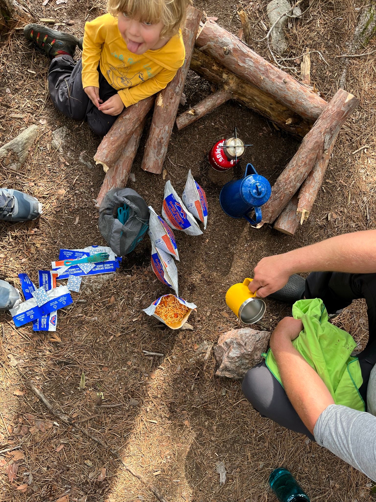 Dinner was multiple packs of a dehydrated spaghetti and meat sauce meal (purchased from MEC.ca) and was absolutely delightful. Were we tired? Yes. Were we hungry? Yes. Would anything have tasted good? Maybe? You know how food always just tastes better when your camping? It may just be that too. But anyways, we decided we probably could have gotten away with only cooking 3 pouches for the five of us. Again, this is another way we can reduce our pack weight in the future.