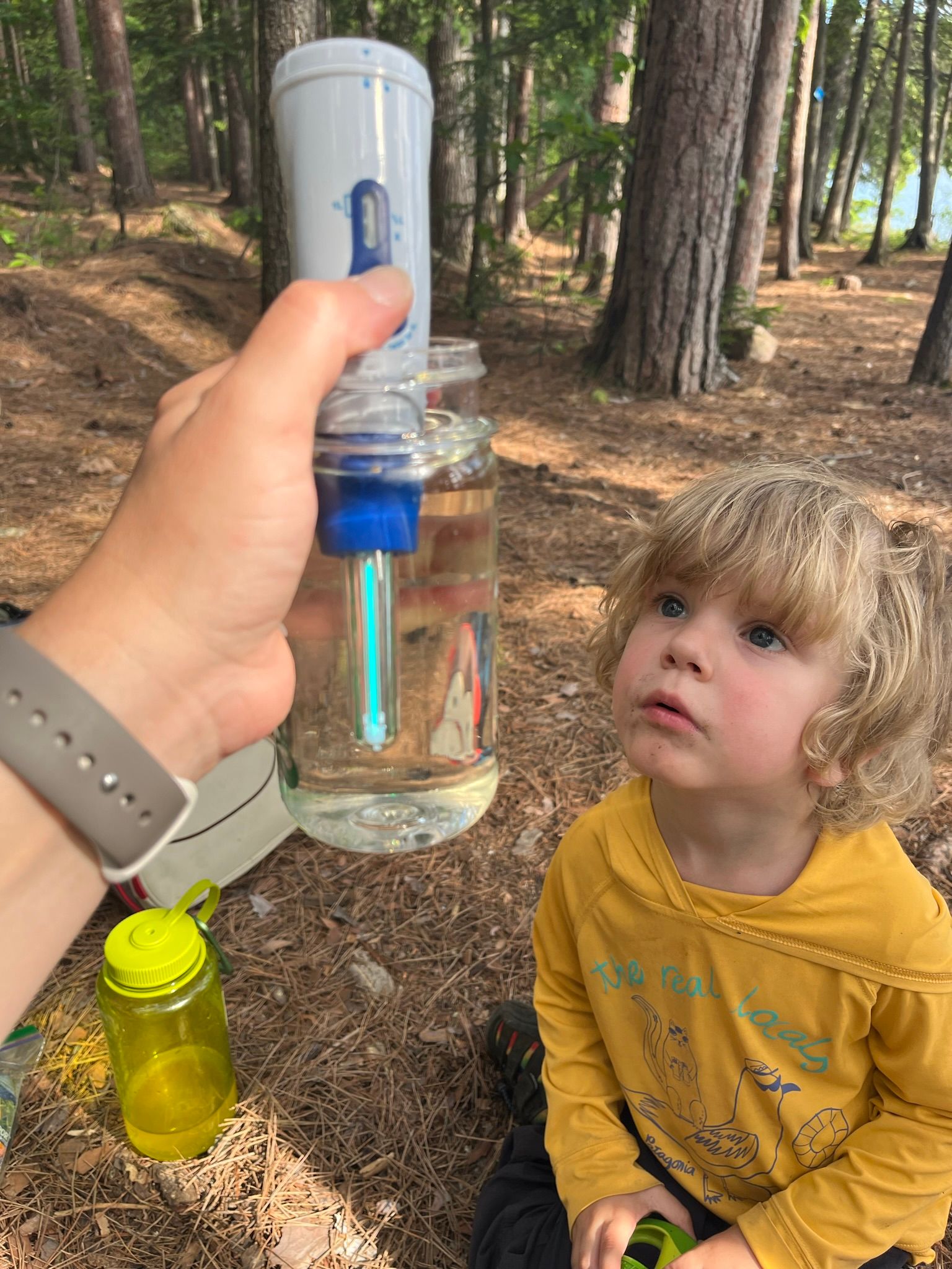 We could easily fill up our water bottles from the lake. Our SteriPen came with a filter that screws to the top of the Nalgene bottles to keep sediment and foliage out of the bottle and then you treat the water using the UV light, following the instructions provided. The kids thought it was cool to see the light work its magic and took turns treating their own bottles.